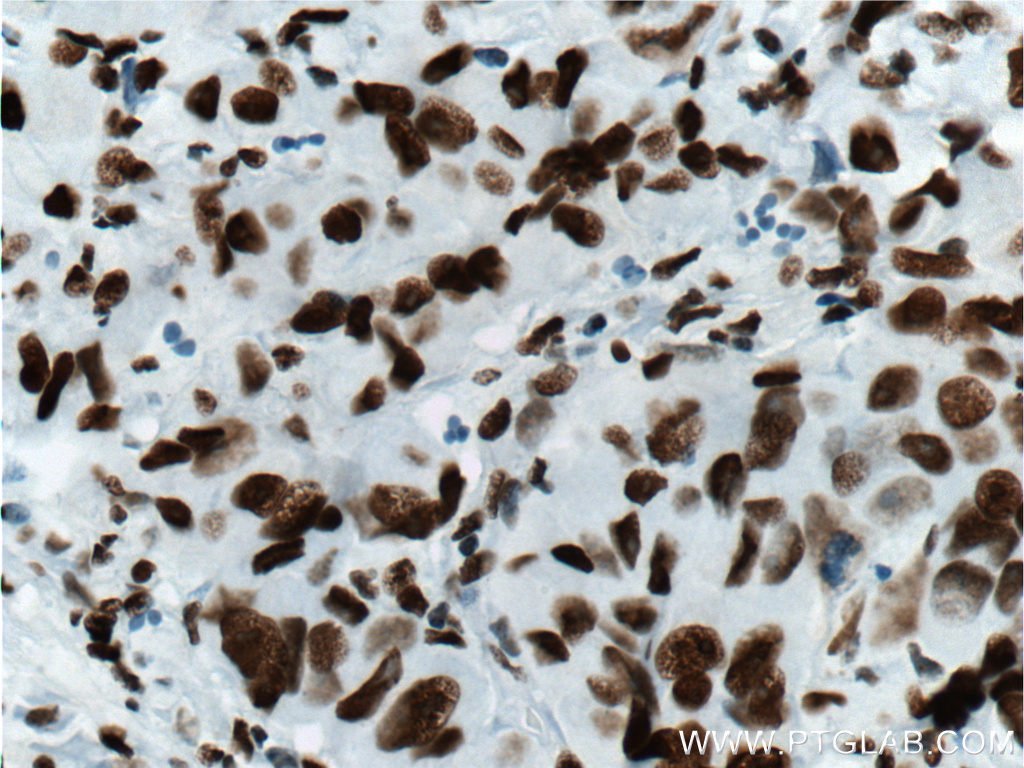 DACH1, a homologue of the Drosophila dachshund gene, is a key regulator of cell fate determination during eye, leg, and brain development in the fly. Through interacting with NCoR and Smad4, DACH1 is able to inhibit the transforming growth factor-beta (TGF-beta) signaling pathway. DACH1 can inhibit breast cancer cellular proliferation via cyclin D1, suggesting a possible role in tumor suppression. Additionally, DACH1 plays an important role in negative regulation of RANKL (Receptor activator of NF-kappaB ligand ) gene expression in marrow stromal/preosteoblast cells. Dach1 expression is enriched in rECs, which are associated with osteoprogenitors and bone-resorbing osteoclasts, and overexpression of DACH1 in postnatal mice induces a strong increase in arteries and type R capillaries, leading to local metabolic changes and enabling trabecular bone formation in normally highly hypoxic areas of the diaphysis (PMID: 39528700). Moreover, Loss of DACH1 expression might be involved in endometrial cancer progression. Four isoforms of DACH1 are produced by alternative splicing, but isoform1(97-110kd) is the predominantly expressed form in tissue. This antibody is a mouse monoclonal antibody raised against residues near the C terminus of human DACH1.
