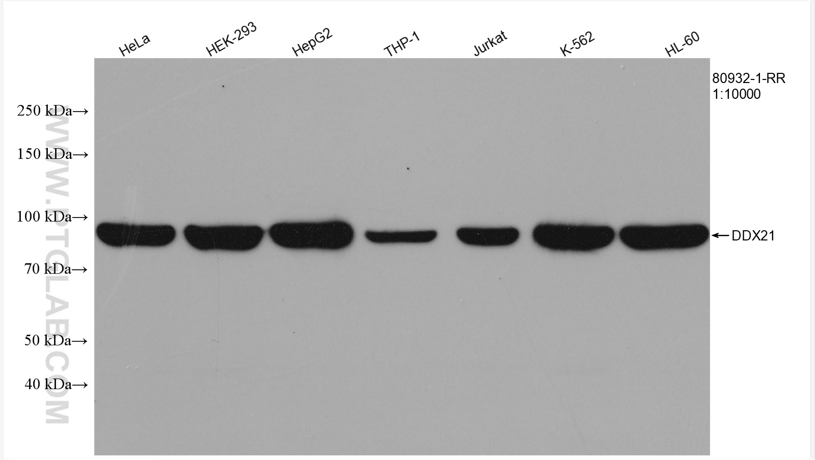 80932-1-RR targets DDX21 in WB, IF/ICC, ELISA applications and shows reactivity with human samples.