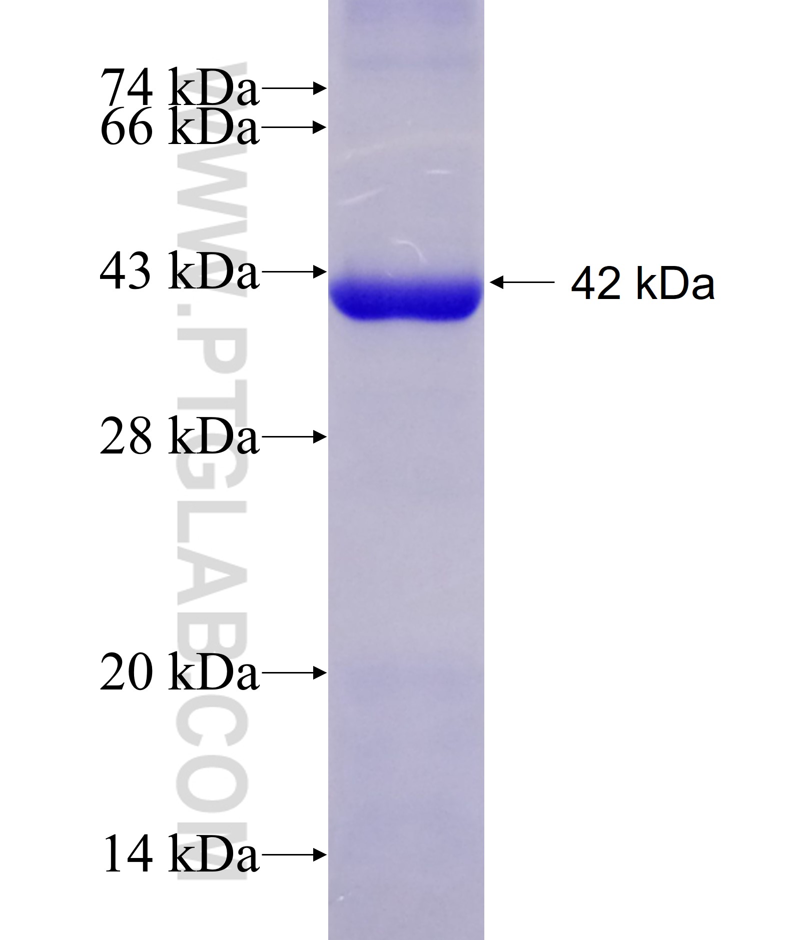 | Formulation | The purified protein was Lyophilized from sterile PBS (58mM Na2HPO4,17mM NaH2PO4, 68mM NaCl, pH7.4). 5 % trehalose and 5 % mannitol are added as protectant before lyophilization. The elution buffer contain 300mM imidazole. |