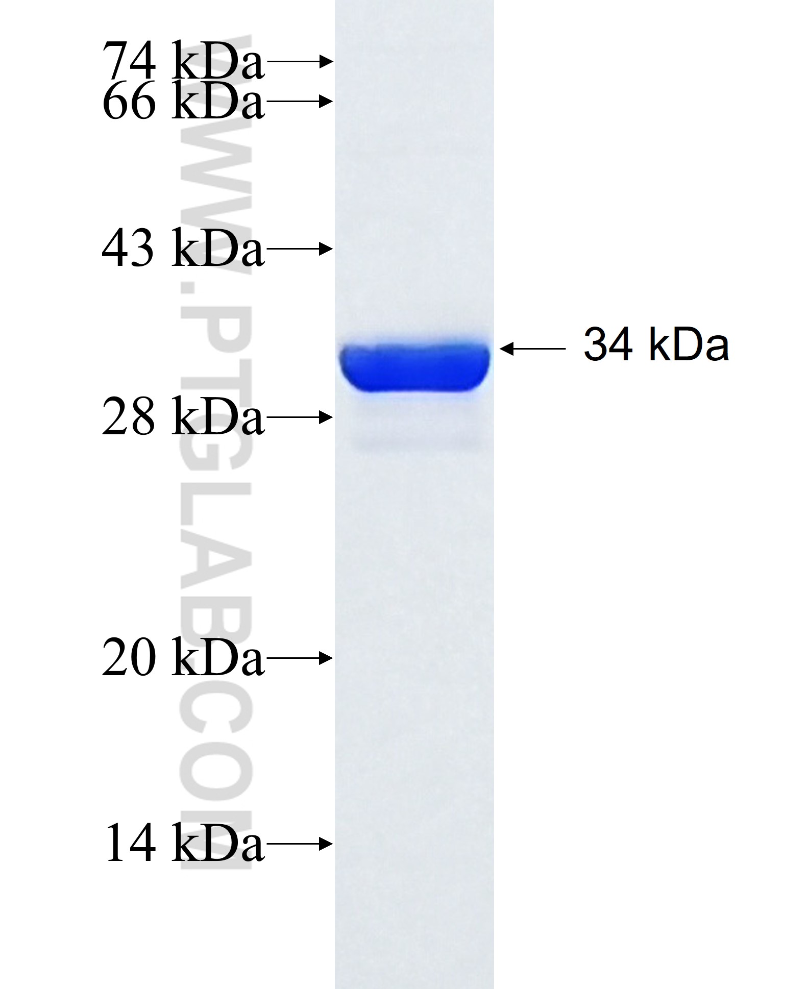 | Formulation | The purified protein was Lyophilized from sterile PBS (58mM Na2HPO4,17mM NaH2PO4, 68mM NaCl, pH8.0). 5 % trehalose and 5 % mannitol are added as protectant before lyophilization. The elution buffer contain 100mM GSH. |