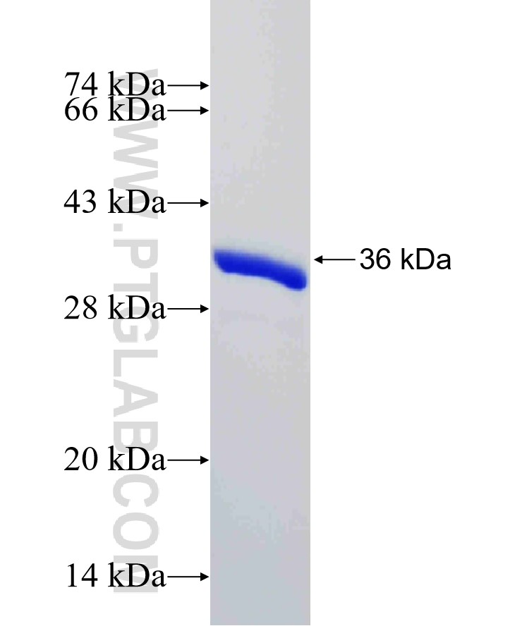 | Formulation | The purified protein was Lyophilized from sterile PBS (58mM Na2HPO4,17mM NaH2PO4, 68mM NaCl, pH8.0). 5 % trehalose and 5 % mannitol are added as protectant before lyophilization. The elution buffer contain 100mM GSH. |