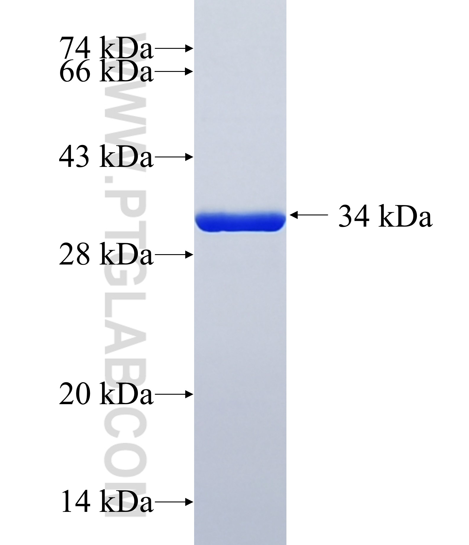 | Formulation | The purified protein was Lyophilized from sterile PBS (58mM Na2HPO4,17mM NaH2PO4, 68mM NaCl, pH8.0). 5 % trehalose and 5 % mannitol are added as protectant before lyophilization. The elution buffer contain 100mM GSH. |