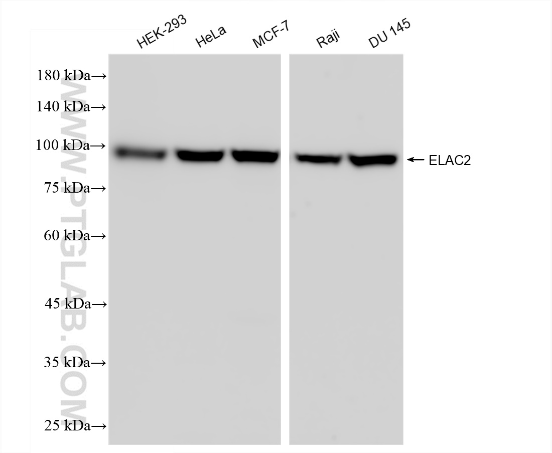 Putative prostate cancer susceptibility protein (ELAC2) is encoded by HPC2/ELAC2 gene. HPC2 is a potential prostate cancer predisposition gene playing a role in genetic susceptibility to prostate cancer.It is a zinc phosphodiesterase, which displays some tRNA 3'-processing endonuclease activity and probably involved in tRNA maturation, by removing a 3'-trailer from precursor tRNA.Defects in ELAC2 may be a cause of susceptibility to prostate cancer (PC).