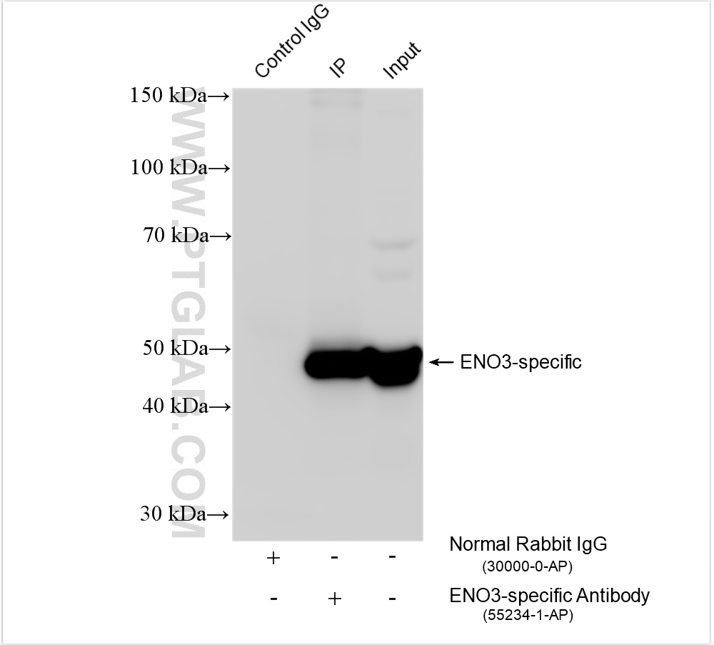 55234-1-AP targets ENO3-specific in WB, IHC, IF/ICC, IP, ELISA applications and shows reactivity with human, mouse samples.