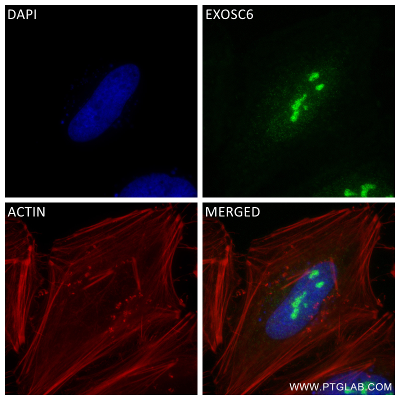 84346-4-RR targets EXOSC6 in WB, IF/ICC, FC (Intra), ELISA applications and shows reactivity with human samples.