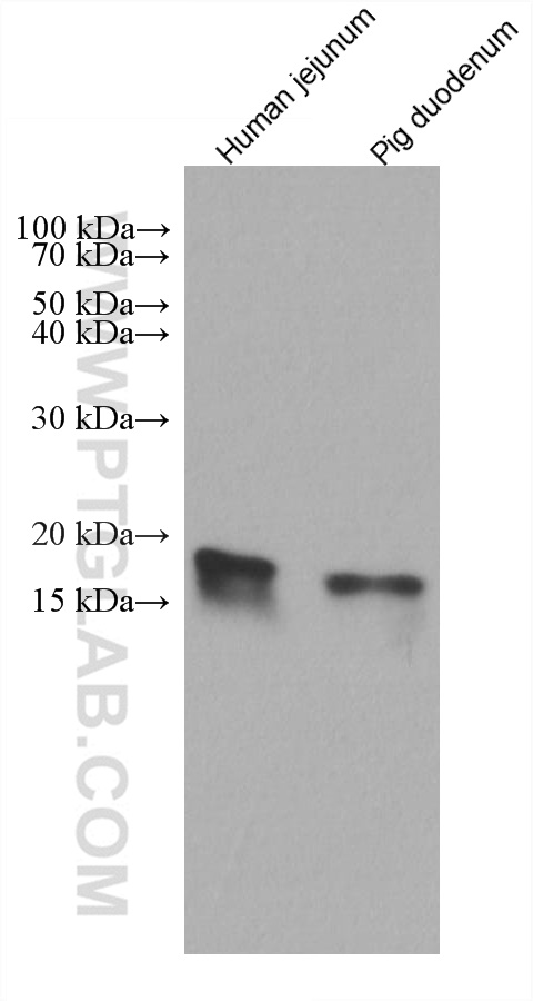 67691-1-PBS targets FABP2 in WB, IHC, IF-P, ELISA applications and shows reactivity with human, mouse, rat, pig, rabbit samples.