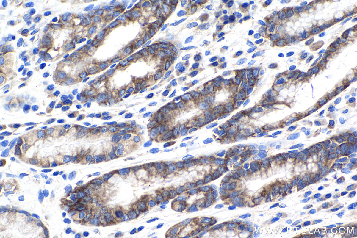 | Positive IHC detected in | human stomach cancer tissue Note: suggested antigen retrieval with TE buffer pH 9.0; (*) Alternatively, antigen retrieval may be performed with citrate buffer pH 6.0 |