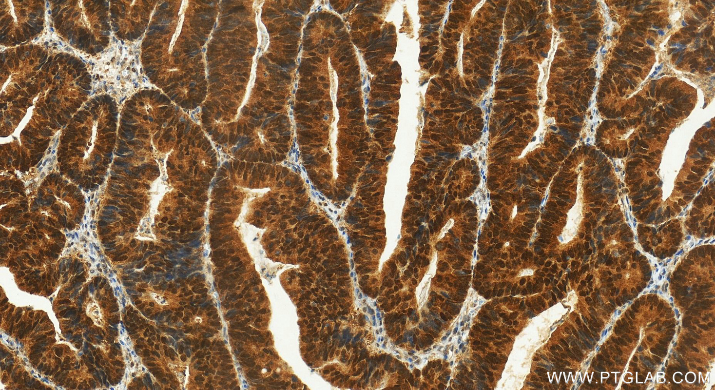 Positive IHC detected in | human colon cancer tissue Note: suggested antigen retrieval with TE buffer pH 9.0; (*) Alternatively, antigen retrieval may be performed with citrate buffer pH 6.0 |