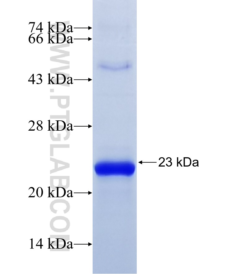 | Formulation | The purified protein was Lyophilized from sterile PBS (58mM Na2HPO4,17mM NaH2PO4, 68mM NaCl, pH7.4). 5 % trehalose and 5 % mannitol are added as protectant before lyophilization. The elution buffer contain 300mM imidazole. |