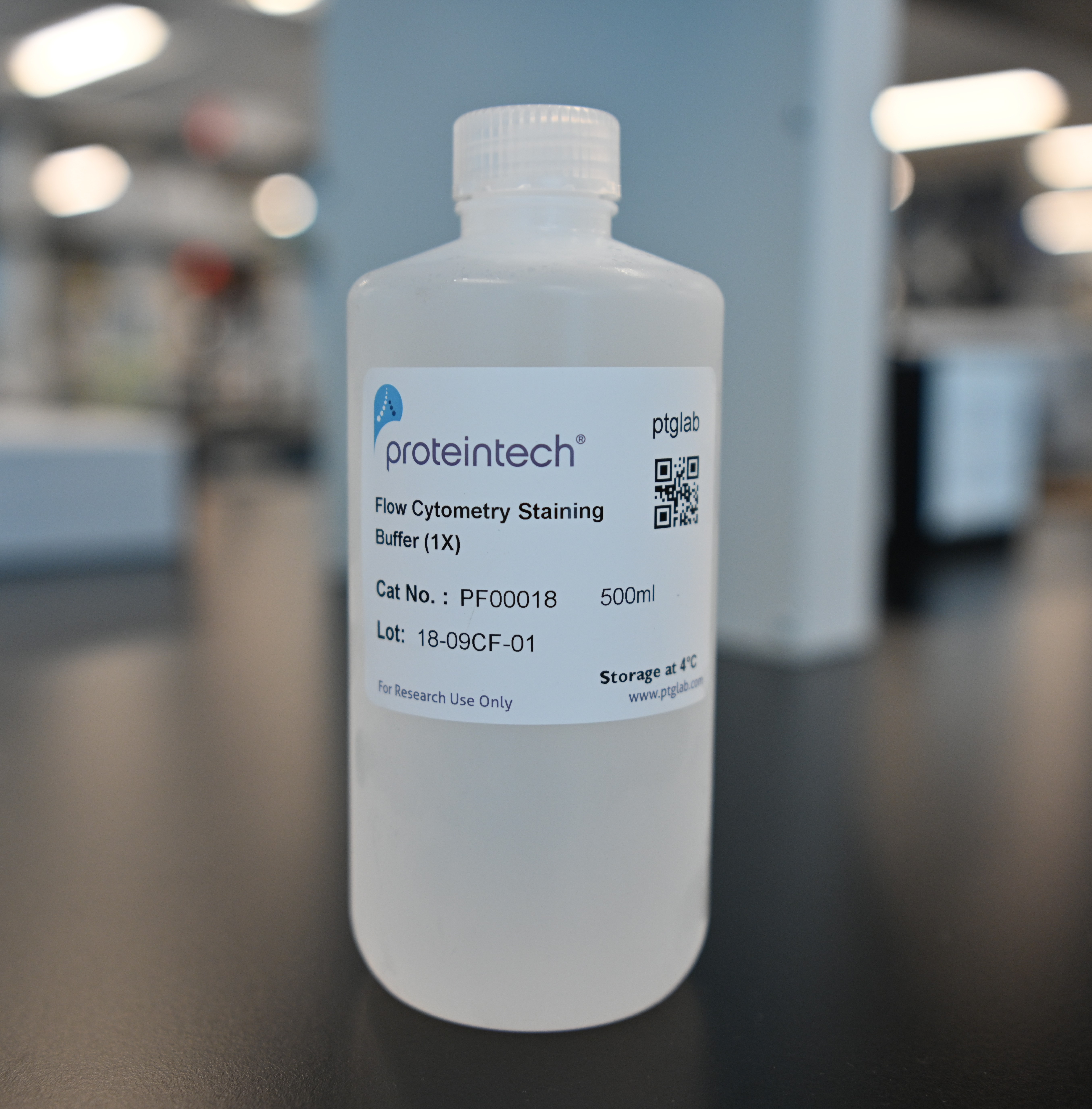 Proteintech的 Flow Cytometry Staining Buffer(1X,#PF00018)是一种配制用于流式细胞术的缓冲液。适用于稀释抗体、稀释细胞、以及表面染色的流式细胞术分析所需的所有清洗和孵育步骤。可以最大程度地维持细胞活性,尽可能的降低非特异性着色。本产品为1×工作液,可直接使用。