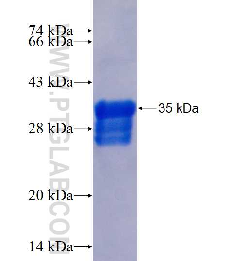 Formulation The protein was expressed as GST-tagged fusion protein by E.Coli and purified by Glutathione-sepharose. The purified protein was resolved in PBS (58mM Na2HPO4,17mM NaH2PO4, 68mM NaCl, pH8.0 ) added with 15% glycerol. The elution buffer contain 100mM GSH.