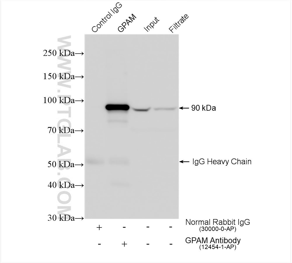 12454-1-PBS targets GPAM in IHC, IP, Indirect ELISA applications and shows reactivity with mouse samples.