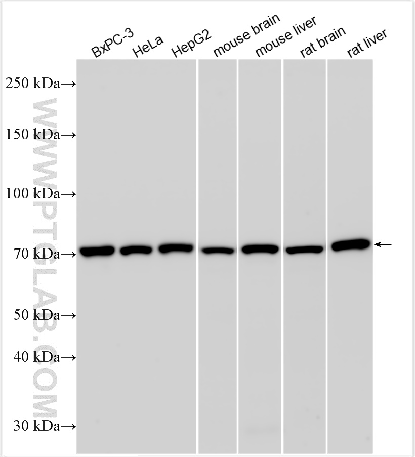 | Positive WB detected in | BxPC-3 cells, Caco-2 cells, HEK-293 cells, HeLa cells, HepG2 cells, mouse brain tissue, mouse liver tissue, rat brain tissue, rat liver tissue, HT-29 cells |