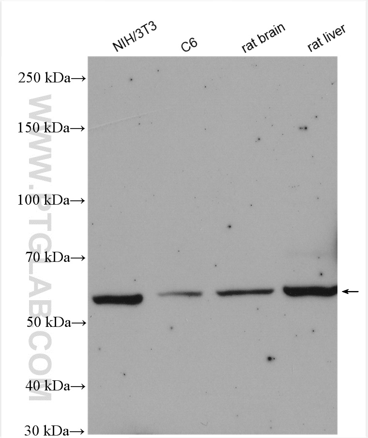 | Positive WB detected in | A431 cells, NIH/3T3 cells, Jurkat cells, C6 cells, rat liver tissue, rat brain tissue |