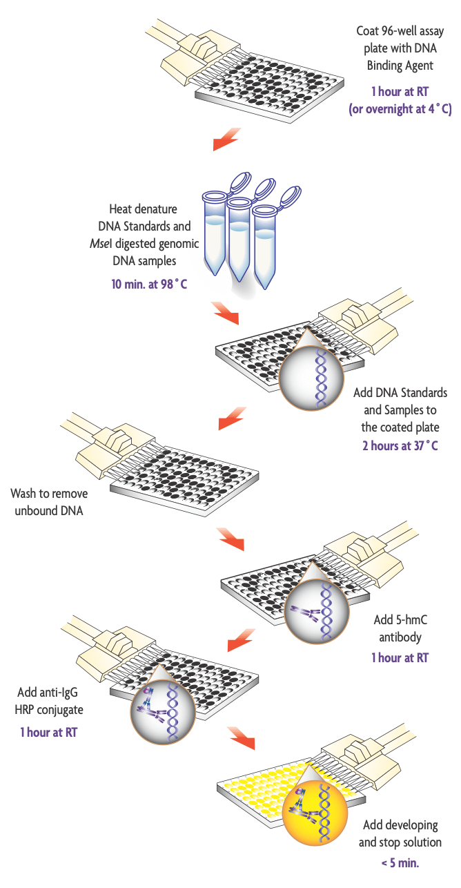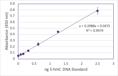 - Highly sensitive; assay reliably detects as little as 0.16% 5-hmC
