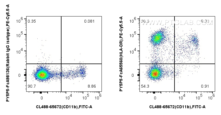 PY5P5-FcA65560 targets HLA-DR in FC applications and shows reactivity with human, monkey, non-human primates samples.