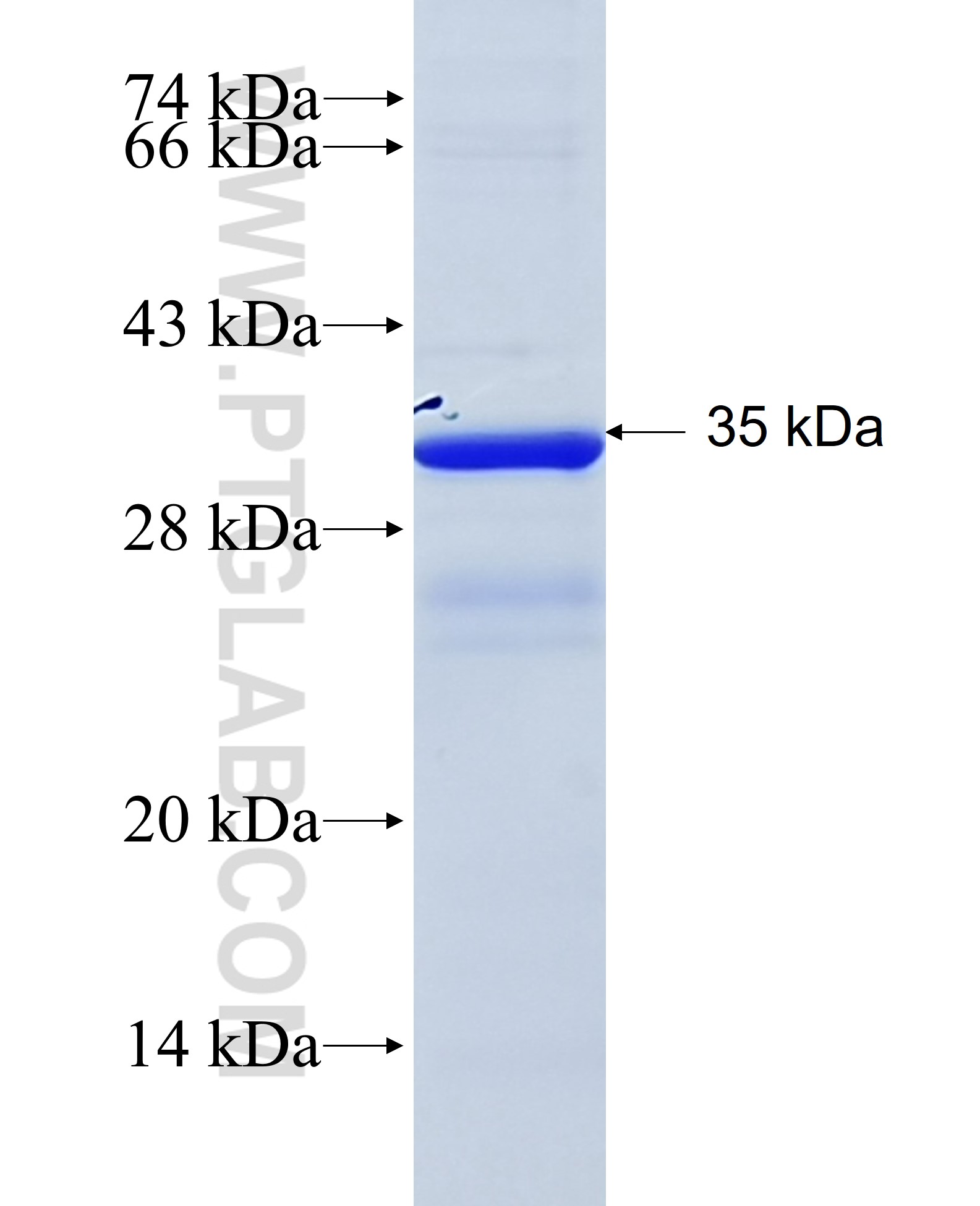 | Formulation | The purified protein was Lyophilized from sterile PBS (58mM Na2HPO4,17mM NaH2PO4, 68mM NaCl, pH7.4). 5 % trehalose and 5 % mannitol are added as protectant before lyophilization. The elution buffer contain 300mM imidazole. |