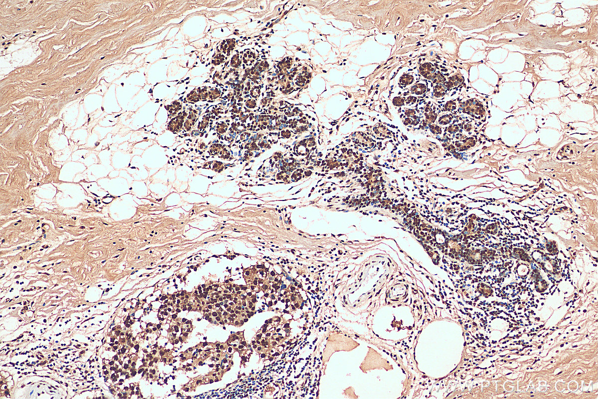 | Positive IHC detected in | mouse pancreas tissue, human breast cancer tissue, human colon tissue, human colon cancer tissue, human liver cancer tissue, human lung cancer tissue Note: suggested antigen retrieval with TE buffer pH 9.0; (*) Alternatively, antigen retrieval may be performed with citrate buffer pH 6.0 |