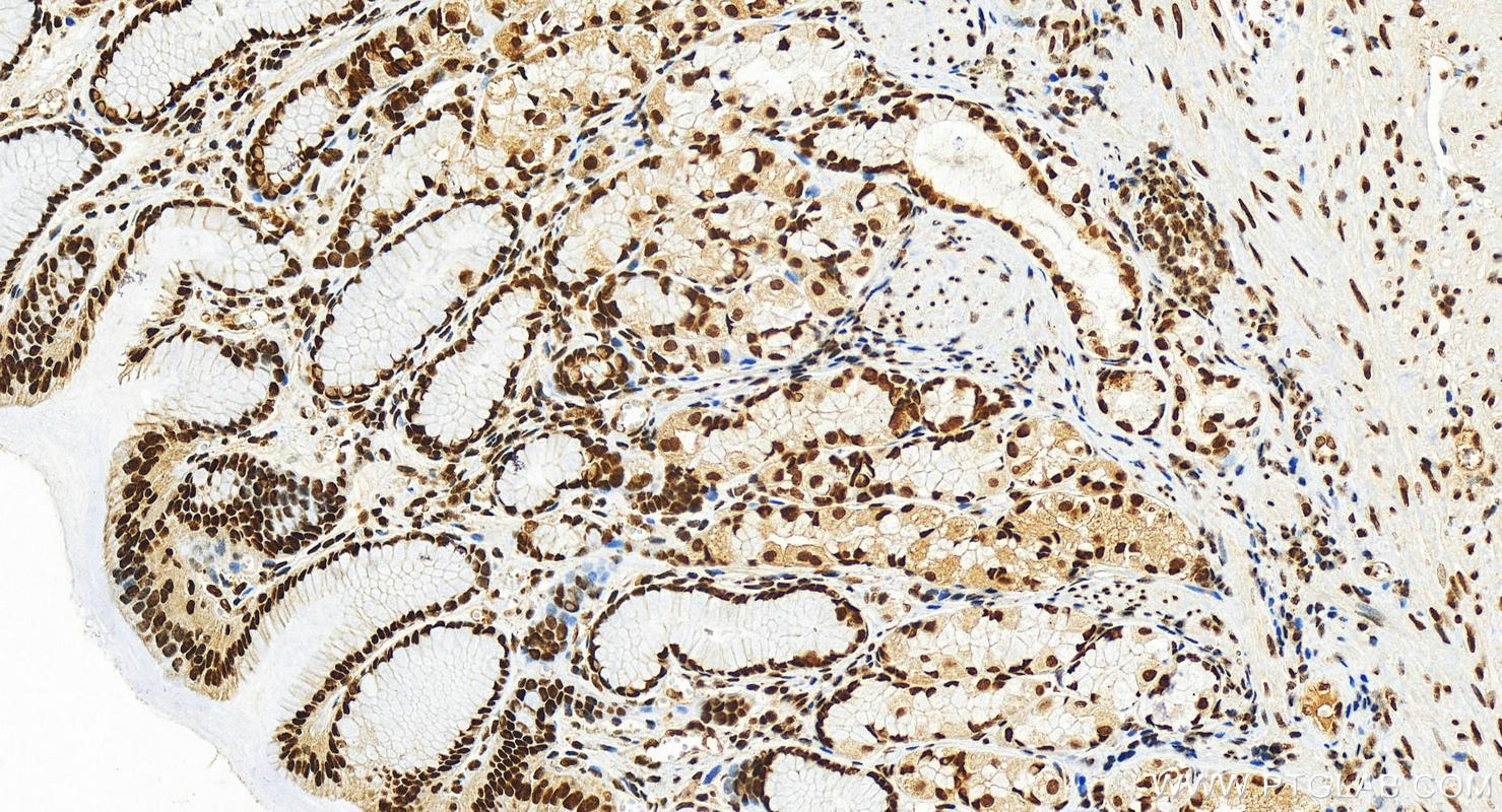 | Positive IHC detected in | human stomach tissue, human colon Note: suggested antigen retrieval with TE buffer pH 9.0; (*) Alternatively, antigen retrieval may be performed with citrate buffer pH 6.0 |
