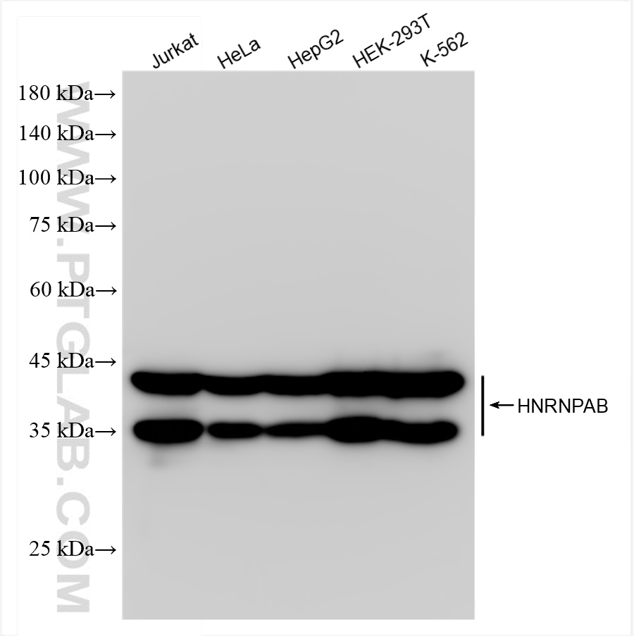Heterogeneous nuclear ribonucleoprotein AB (HNRNPAB) is a member of the hnRNP family involved in multiple forms of transcriptional control. It plays an important role in normal biological processes and tumor development and progression. HNRNPAB acts as a direct transcriptional target of c-Myc and promotes G1/S cell cycle progression and cell proliferation via CDK4(PMID: 36657708).