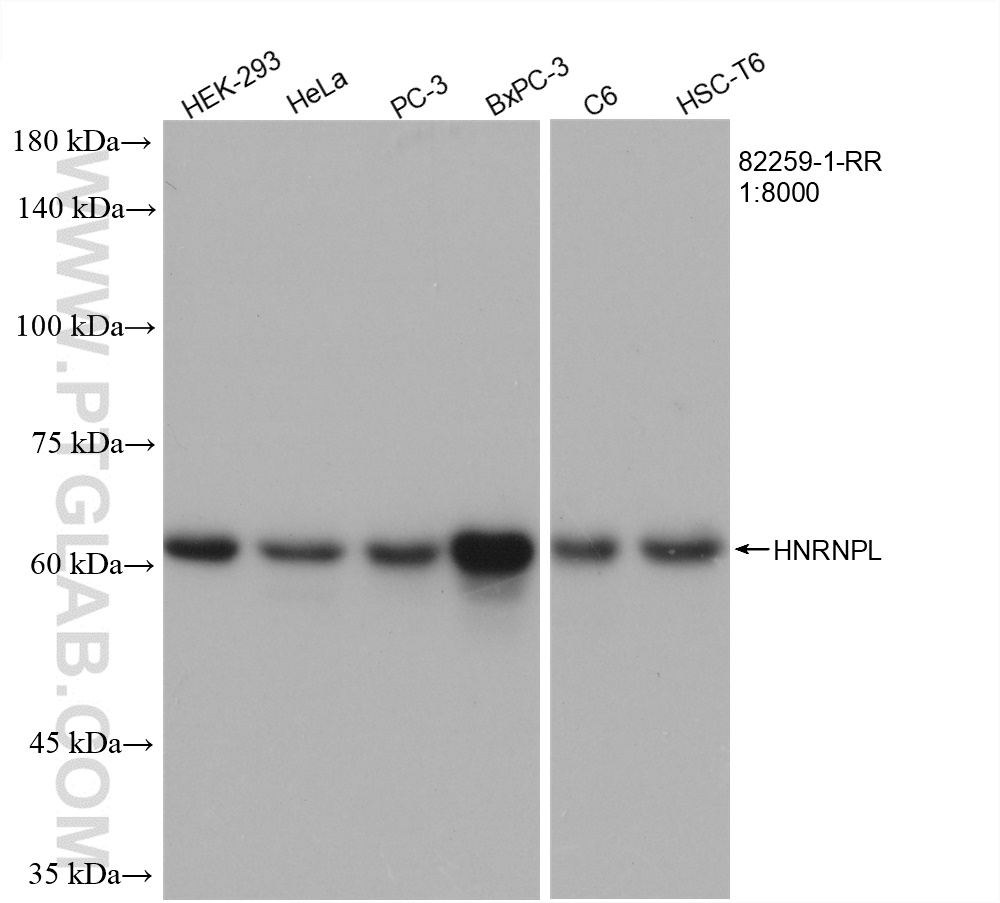 82259-1-PBS targets HNRNPL in WB, IHC, Indirect ELISA applications and shows reactivity with human, rat samples.