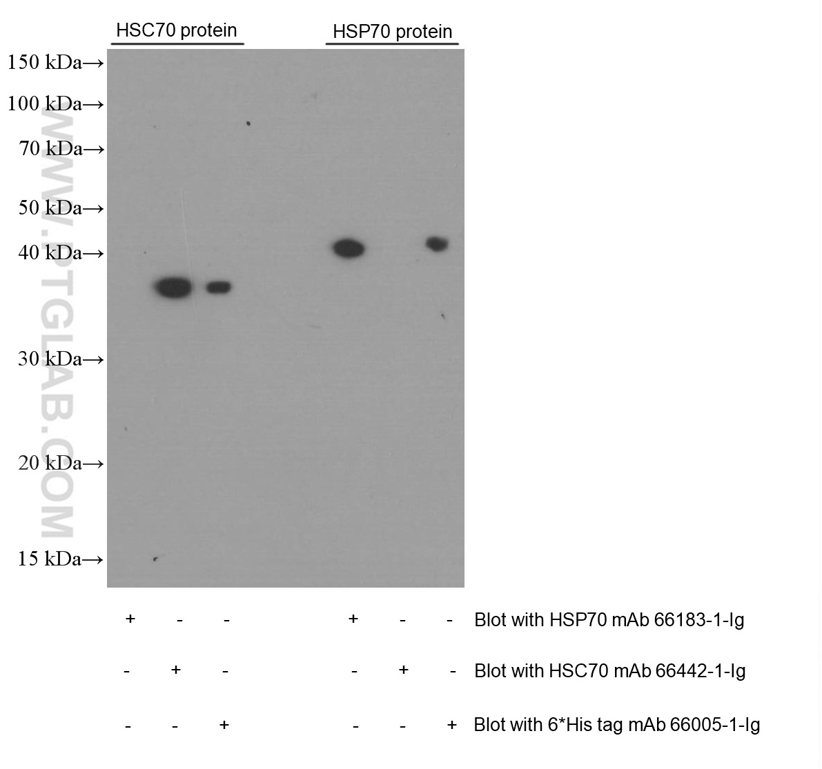 66183-1-Ig targets HSP70 in WB, IHC, IF/ICC, FC (Intra), CoIP, ELISA applications and shows reactivity with human, mouse, rat, yeast samples.