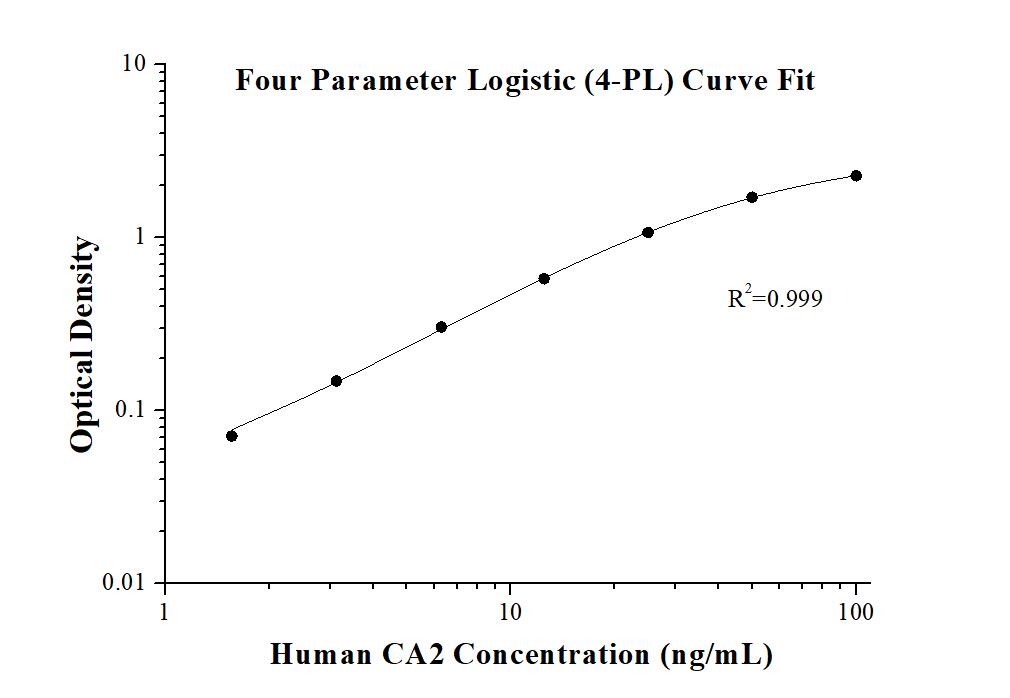 KE00936 is a solid phase sandwich Enzyme Linked-Immuno-Sorbent Assay (Sandwich ELISA). The human CA2 ELISA kit is to be used to detect and quantify protein levels of endogenous human CA2. The assay recognizes human CA2. An antibody specific for human CA2 has been pre-coated onto the microwells. The human CA2 protein in samples is captured by the coated antibody after incubation. Following extensive washing, another horseradish peroxidase (HRP)-conjugated antibody specific for human CA2 is added to detect the captured human CA2 protein. For signal development, followed by Tetramethyl-benzidine (TMB) reagent. Solution containing sulfuric acid is used to stop color development and the color intensity which is proportional to the quantity of bound protein is measurable at 450 nm with the correction wavelength set at 630 nm.