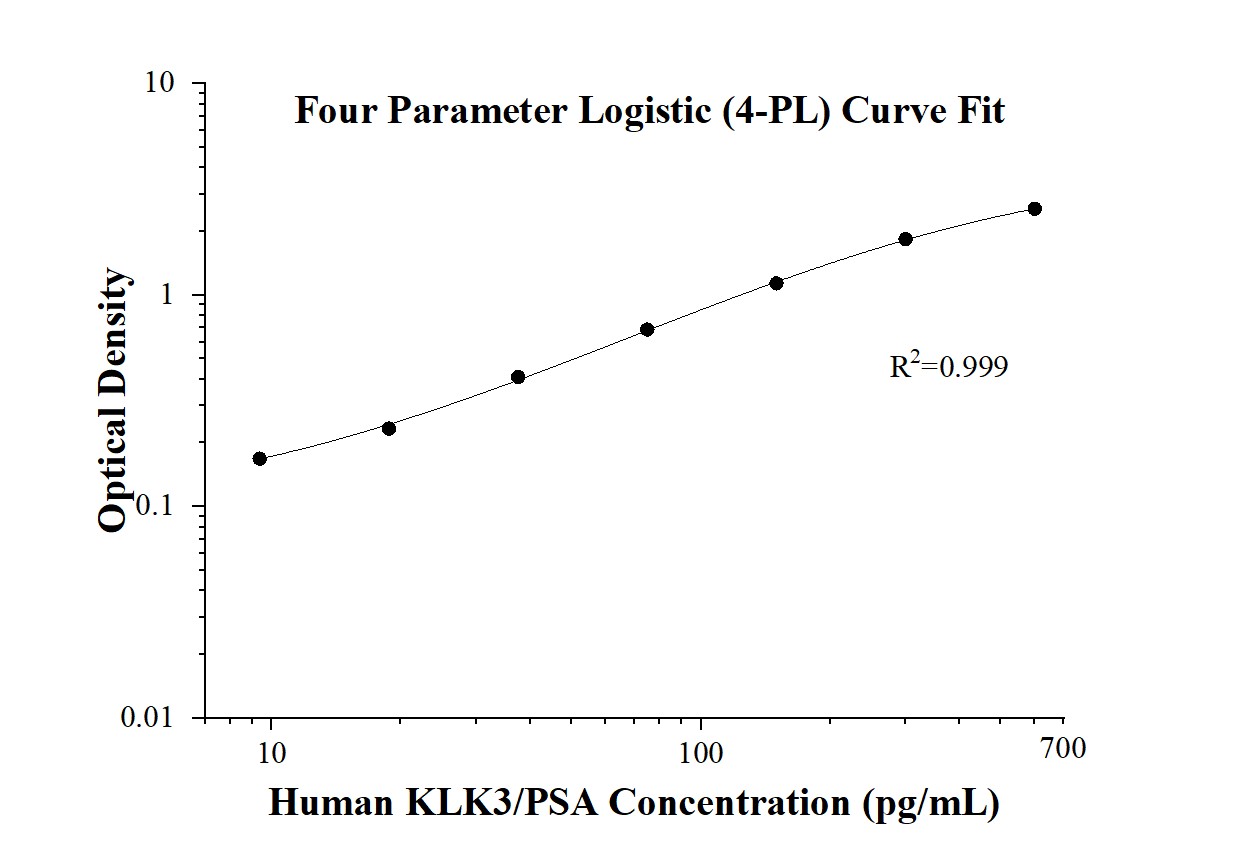 KE00708 is a solid phase sandwich Enzyme Linked-Immuno-Sorbent Assay (Sandwich ELISA). The human KLK3/PSA ELISA kit is to be used to detect and quantify protein levels of endogenous human KLK3/PSA. The assay recognizes human KLK3/PSA. An antibody specific for human KLK3/PSA has been pre-coated onto the microwells. The human KLK3/PSA protein in samples is captured by the coated antibody after incubation. Following extensive washing, another horseradish peroxidase (HRP)-conjugated antibody specific for human KLK3/PSA is added to detect the captured human KLK3/PSA protein. For signal development, followed by Tetramethyl-benzidine (TMB) reagent. Solution containing sulfuric acid is used to stop color development and the color intensity which is proportional to the quantity of bound protein is measurable at 450 nm with the correction wavelength set at 630 nm.