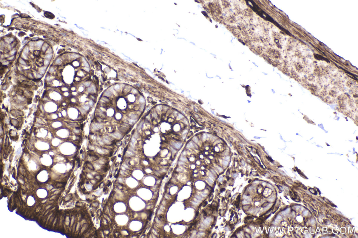 Plectin is a large (≥500-kDa) protein that is normally expressed in various tissues including skin, muscle, and brain. It binds to a number of cytoskeletal proteins including microtubules and intermediate filaments and is involved in establishment and dynamic modulation of the cytoskeletal network. In normal cells, it plays a crucial role in cytoskeleton network organization. In keratinocytes, plectin is concentrated at the basal surface, where it links intermediate filaments to the cytoplasmic domain of transmembrane glycoproteins such as integrin beta-4.