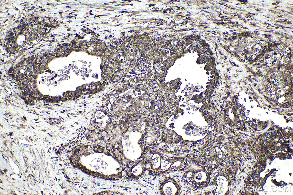 PRMT2 (also known as HRMT1L1) is a member of the arginine methyltransferase family which catalyzes arginine methylation and regulates diverse cellular processes, including transcription, translation, DNA repair, and RNA processing. Recently PRMT2 has been identified as a pro-tumorigenic factor in malignant gliomas.