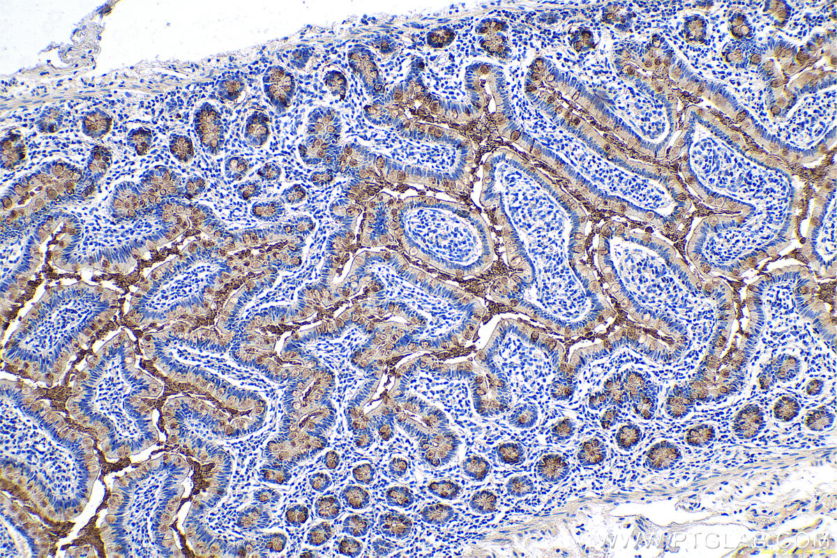 Trefoil factor 3 (TFF3) belongs to the TFF-domain peptide family which consists of three small secreted proteins (TFF1, TFF2, TFF3) that are expressed by mucous-secreting epithelia. TFF3 is a major constituent in the goblet cells in small and large intestines, especially a typical secretary peptide of the normal human antral and pyloric gastric mucosa. TFF3 is essential in regulating cell migration and maintaining normal GI mucosal integrity. TFF3 has been reported to be overexpressed at the gene and the protein level in human neoplasms such as prostate, breast, and colon cancer. TFF3 is involved in tumor cell scattering, angiogenesis, and invasion.
