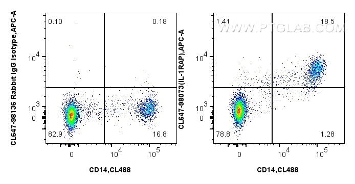 CL647-98073 targets IL-1RAP in FC applications and shows reactivity with human samples.