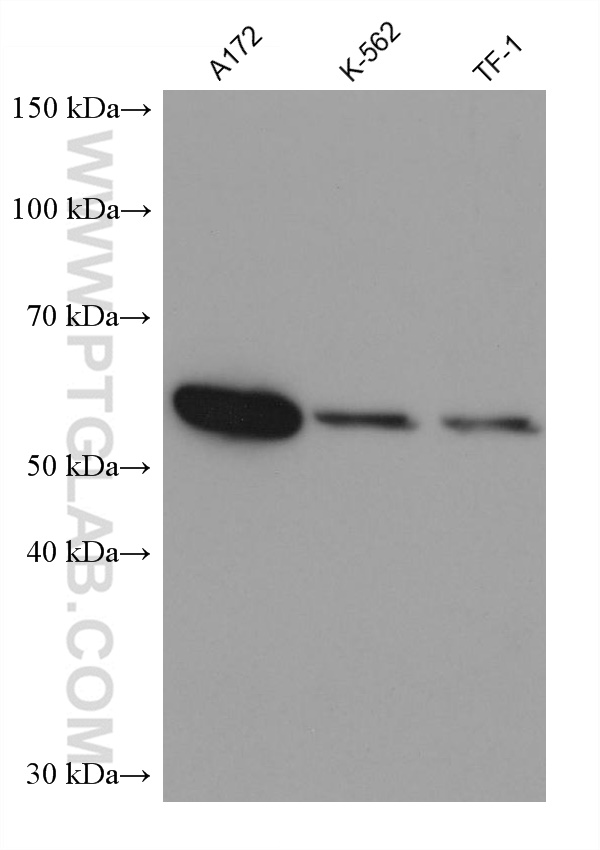 | Positive WB detected in | HepG2 cells, A172 cells, MJ cells, K-562 cells, TF-1 cells, MOLT-4 cells, HuT 78 cells, NK-92 cells, human placenta tissue |