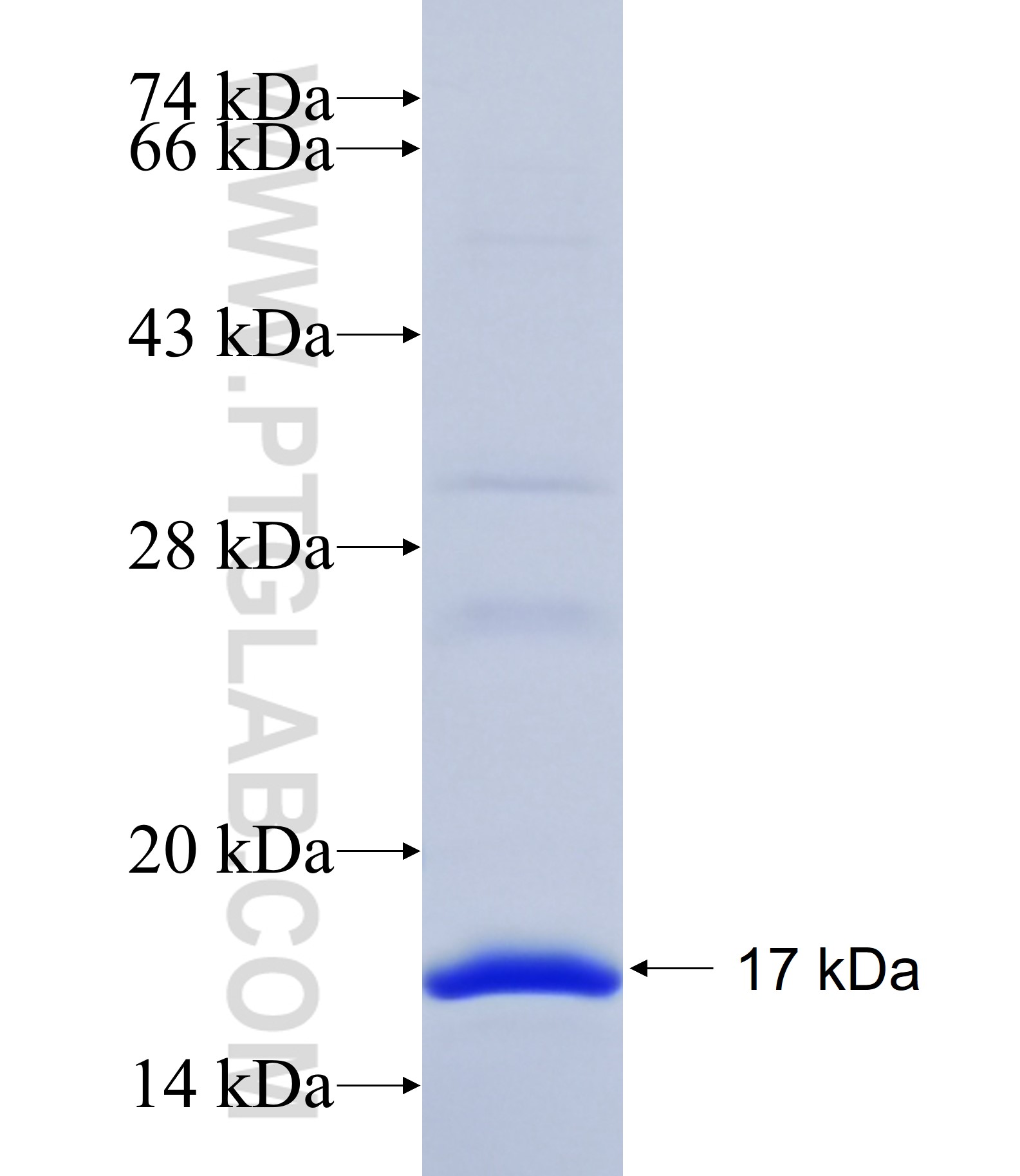 | Formulation | The purified protein was Lyophilized from sterile PBS (58mM Na2HPO4,17mM NaH2PO4, 68mM NaCl, pH7.4). 5 % trehalose and 5 % mannitol are added as protectant before lyophilization. The elution buffer contain 300mM imidazole. |