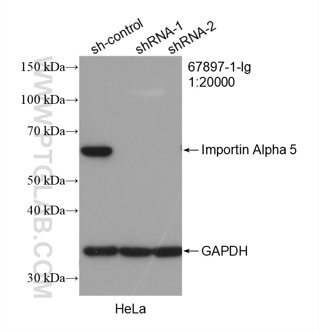 67897-1-Ig targets Importin Alpha 5 in WB, IHC, IF/ICC, ELISA applications and shows reactivity with Human, mouse, rat samples.