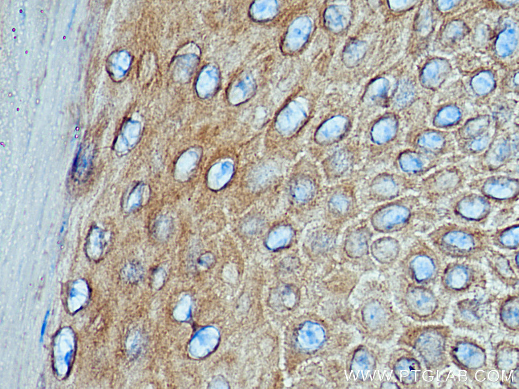 Immunohistochemical analysis of paraffin-embedded human oesophagus cancer tissue slide using 10712-1-AP (Cytokeratin 19 antibody) at dilution of 1:6000 (under 40x lens). Heat mediated antigen retrieval with Tris-EDTA buffer (pH 9.0).