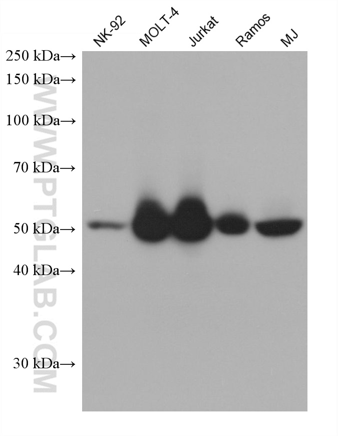 | Positive WB detected in | NK-92 cells, Jurkat cells, pig thymus tissue, Ramos cells, rat thymus tissue, MOLT-4 cells, MJ cells |
