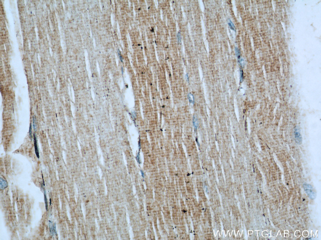 | Positive IHC detected in | human heart tissue, human skeletal muscle tissue, human testis tissue Note: suggested antigen retrieval with TE buffer pH 9.0; (*) Alternatively, antigen retrieval may be performed with citrate buffer pH 6.0 |