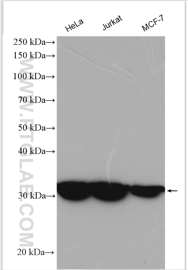 | Positive WB detected in | HEK-293 cells, A431 cells, HeLa cells, MDA-MB-231 cells, mouse testis tissue, rat kidney tissue, Jurkat cells, NIH/3T3 cells, MCF-7 cells |