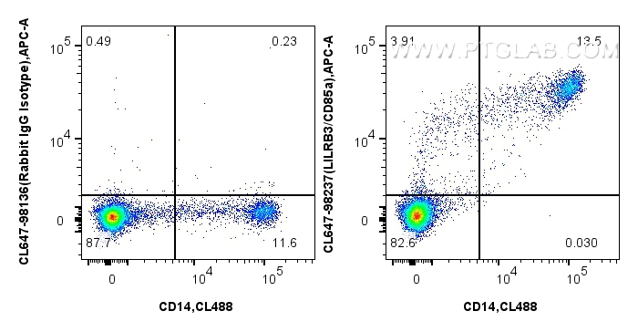 CL647-98237 targets LILRB3/CD85a in FC applications and shows reactivity with human samples.