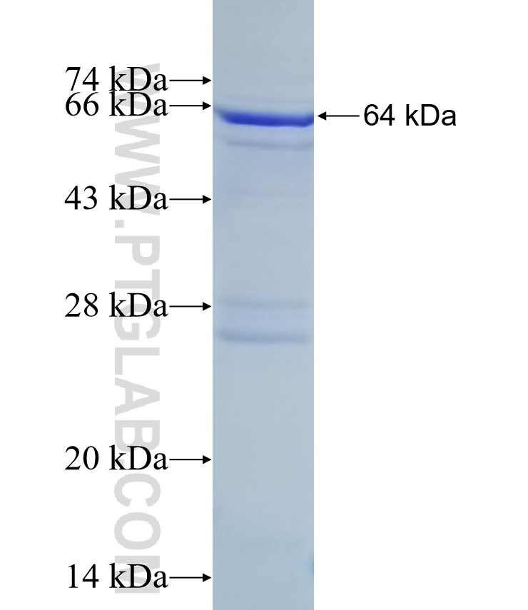 Formulation The protein was expressed as GST-tagged fusion protein by E.Coli and purified by Glutathione-sepharose. The purified protein was resolved in PBS (58mM Na2HPO4,17mM NaH2PO4, 68mM NaCl, pH8.0 ) added with 15% glycerol. The elution buffer contain 100mM GSH.