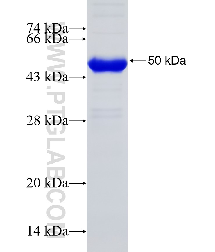 | Formulation | The purified protein was Lyophilized from sterile PBS (58mM Na2HPO4,17mM NaH2PO4, 68mM NaCl, pH7.4). 5 % trehalose and 5 % mannitol are added as protectant before lyophilization. The elution buffer contain 300mM imidazole. |