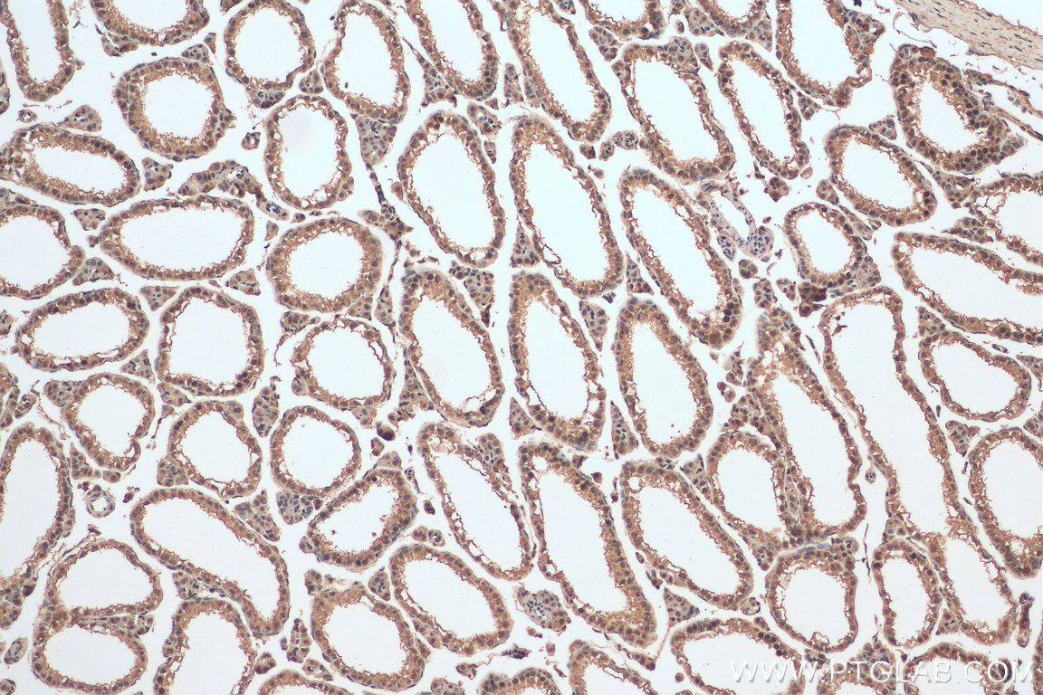 | Positive IHC detected in | human kidney tissue, mouse testis tissue Note: suggested antigen retrieval with TE buffer pH 9.0; (*) Alternatively, antigen retrieval may be performed with citrate buffer pH 6.0 |