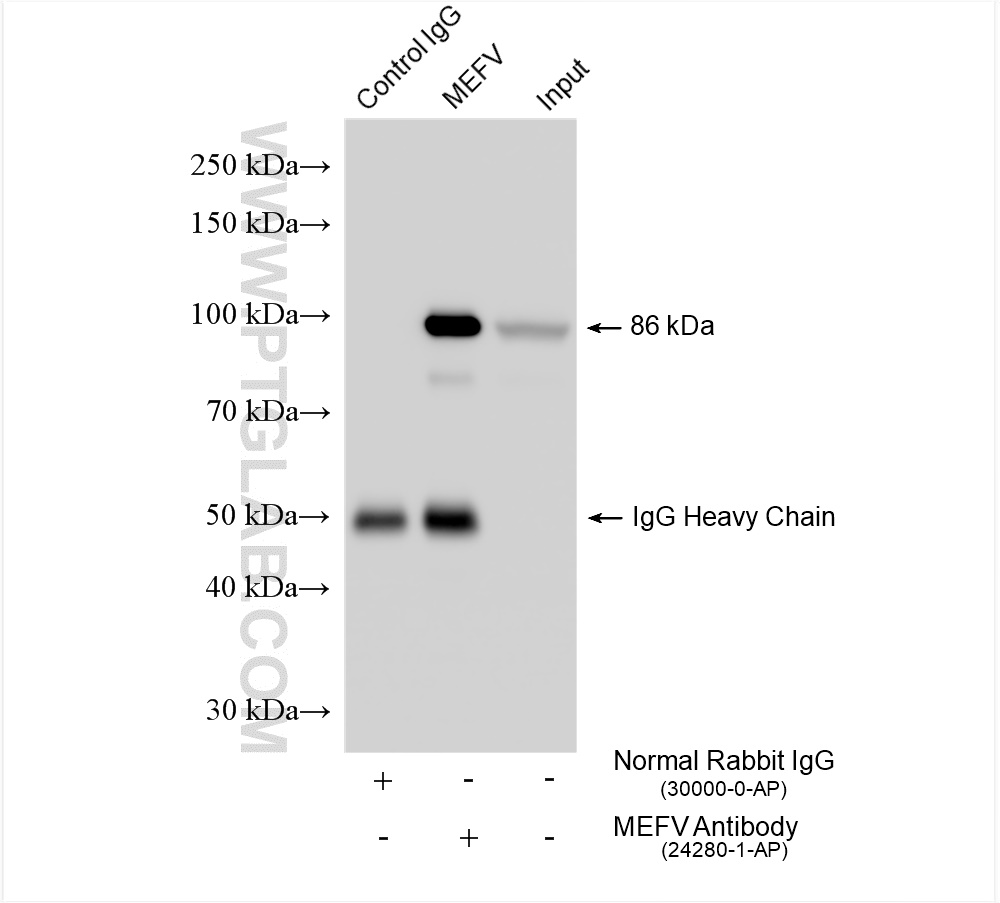 | IP protocol for MEFV antibody 24280-1-AP | Download protocol |