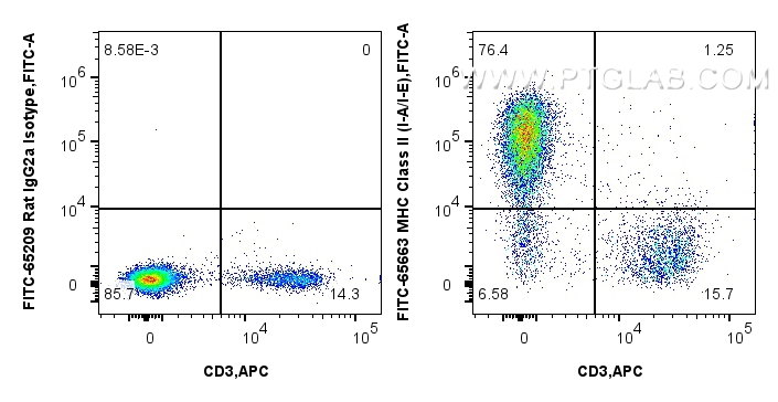 FITC-65663 targets MHC Class II (I-A/I-E) in FC applications and shows reactivity with mouse samples.