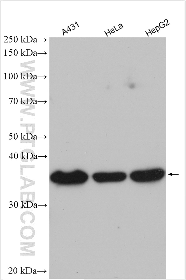 | Positive WB detected in | A431 cells, HeLa cells, HepG2 cells |