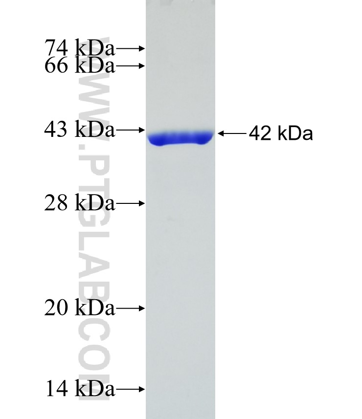 | Formulation | The purified protein was Lyophilized from sterile PBS (58mM Na2HPO4,17mM NaH2PO4, 68mM NaCl, pH8.0). 5 % trehalose and 5 % mannitol are added as protectant before lyophilization. The elution buffer contain 100mM GSH. |