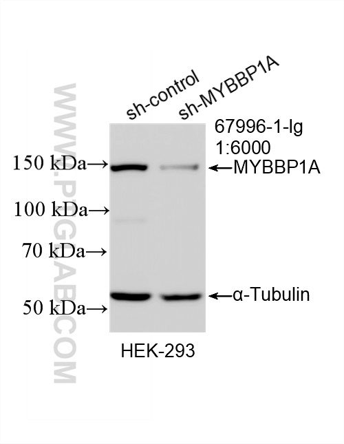 67996-1-Ig targets MYBBP1A in WB, IHC, IF/ICC, ELISA applications and shows reactivity with human, mouse, rat samples.