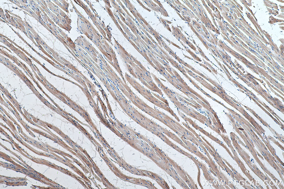 Myoglobin is a cytoplasmic hemoprotein that is expressed primarily in cardiomyocytes and oxidative skeletal muscle fibers, functioning on facilitating oxygen transport and modulating nitric oxide homeostasis within cardiac and skeletal myocytes. Recent studies indicated that myoglobin was also expressed in non-muscle tissues. This antibody well recognized endogenous myoglobin in muscle lysates.