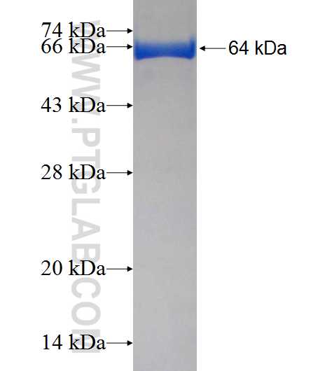 | Formulation | The purified protein was Lyophilized from sterile PBS (58mM Na2HPO4,17mM NaH2PO4, 68mM NaCl, pH8.0). 5 % trehalose and 5 % mannitol are added as protectant before lyophilization. The elution buffer contain 100mM GSH. |